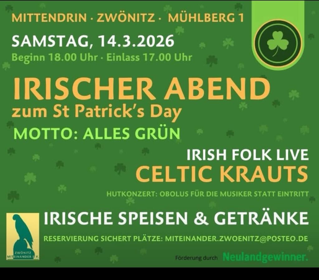 Sei herzlich willkommen auf unserer Homepage. Hier kannst du dir ein Bild von unserer Band machen, dir Konzertmitschnitte anschauen und dich über die kommenden Veranstaltungen informieren. Wir hoffen, dich bald bei einem unserer Auftritte zu sehen… ☘️🇮🇪
