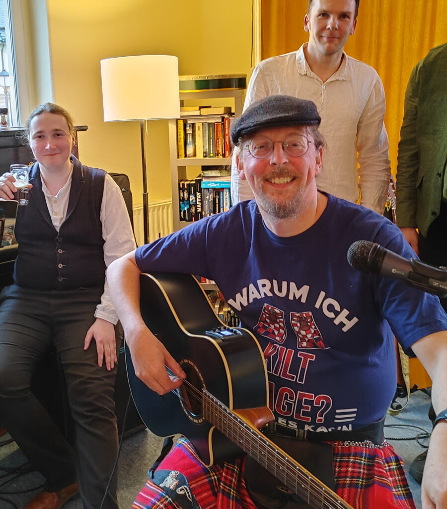 Gesagt getan, holten wir uns mit Uwe einen absoluten Auskenner und Inselspezialisten in die Band. Uwe, seines Zeichens Irland- und Schottland-Fan, hat sich von Allen am längsten mit der Musik der grünen Inseln befasst. Er hat Irland und Schottland als seine zweite Heimat auserkoren und einen unglaublichen Fundus an wunderschönen Liedern.