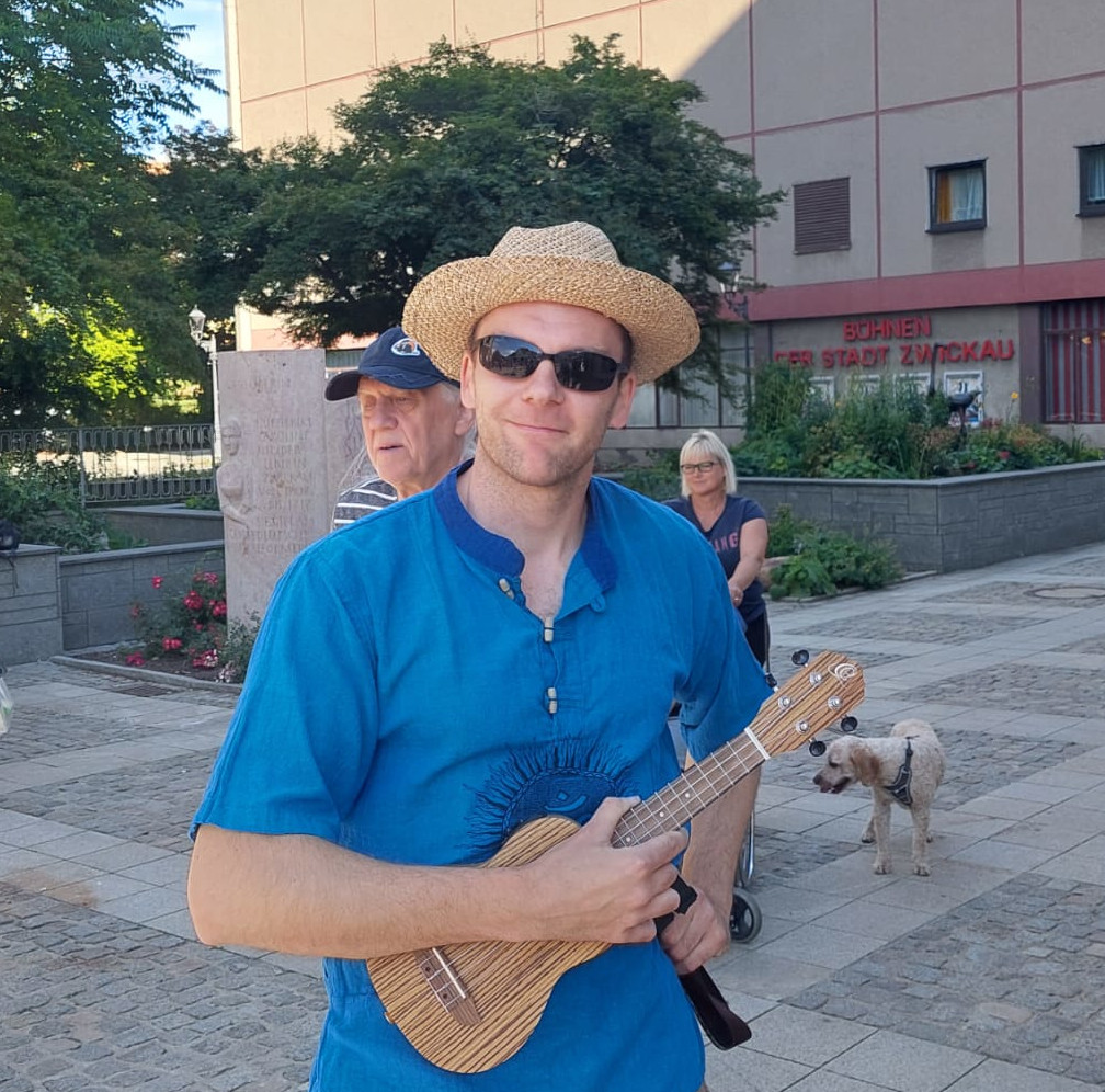 Daniel, der als Dritter in die Band kam, bezeichnet sich selbst als Musikgenie: Er beherrscht, wie er selbst behauptet, 12 Akkorde – auf jedem Instrument vier. 🥳 Nebenbei macht er noch Perkussion und Tontechnik.